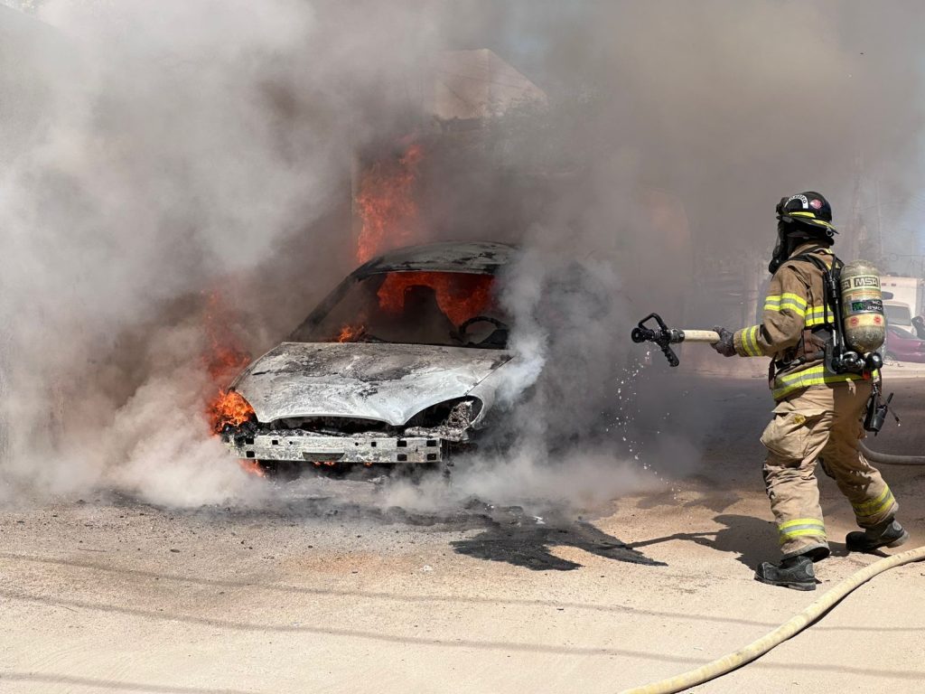 Incendio de vehículo atendido por Bomberos de Cabo San Lucas.